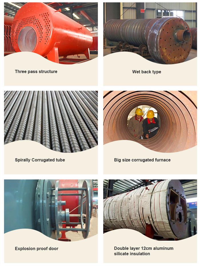 1.**臥式爐采用大爐膽,高輻射面,中心回燃,燃燒空氣充分,受熱面積利用率高。應用煙管內增設攏流片技術,不僅擴展傳熱面,而且其對煙塵的"自潔”功能可有效降低熱阻,提高導熱效果。立式爐為燃燒器下置式煙火管鍋爐燃料霧化后在平直爐膽內微正壓燃燒。采用高級離心玻璃棉多層保溫,熱損失降低至*低。